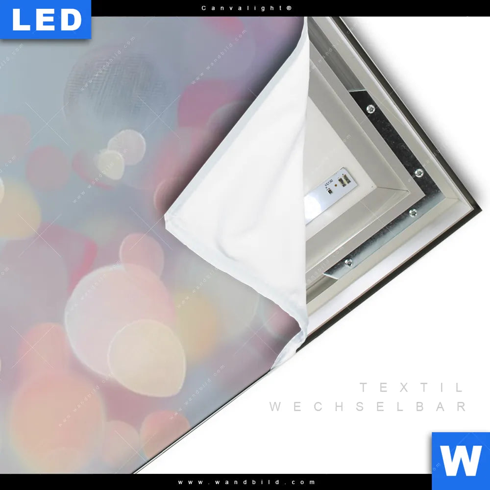 LED-Textilrahmen-Bild mit austauschbarem Blumen - Botanik Textil-Druck (Wechselbild)