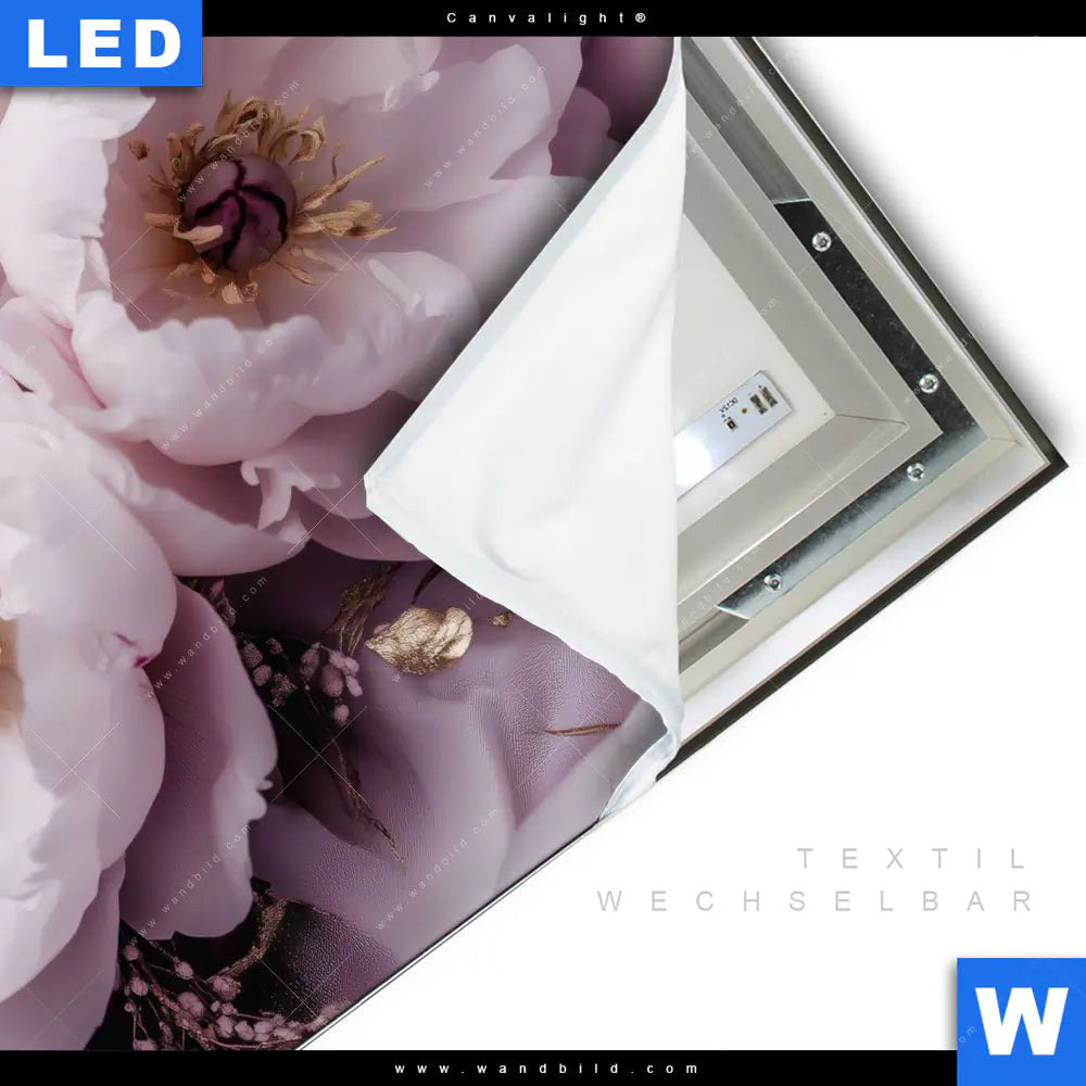 Canvalight® TEX Leuchtbild | Romantische Pfingstrosen | Quadrat