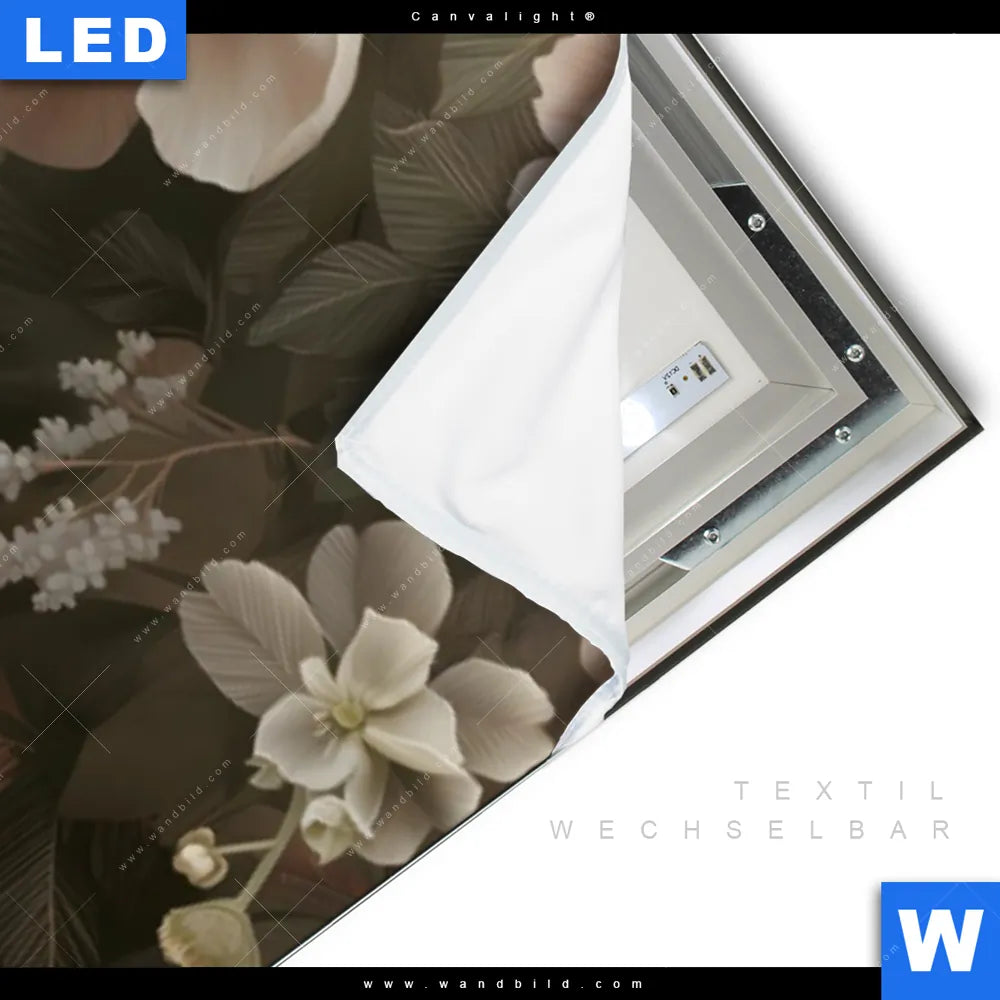 LED-Textilrahmen-Bild mit austauschbarem Tierwelt, Blumen - Botanik Textil-Druck (Wechselbild)