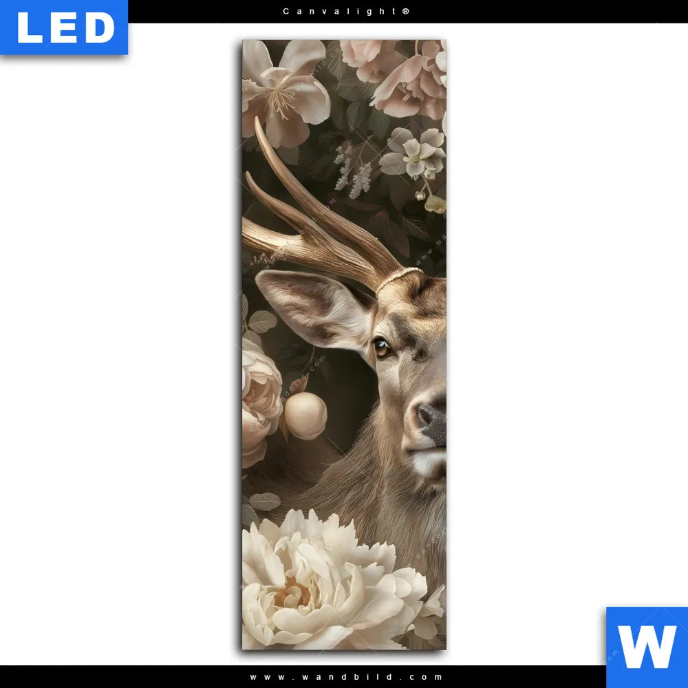 Canvalight® Leuchtbild | Romantischer Hirsch mit Blumen | Schmal