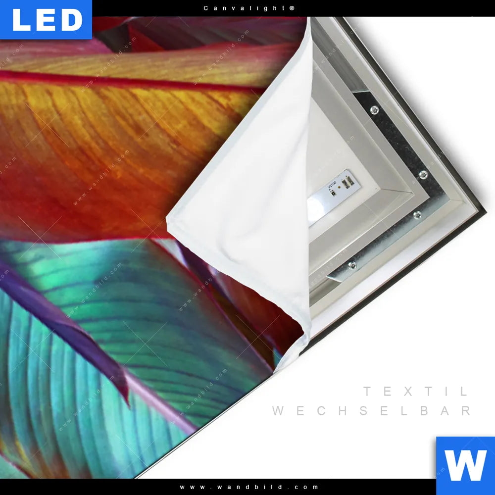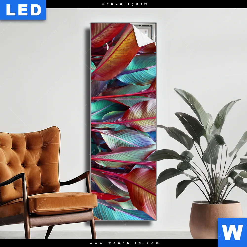 Canvalight® TEX Leuchtbild | Rote und smaragdgrüne Blätter | Schmal