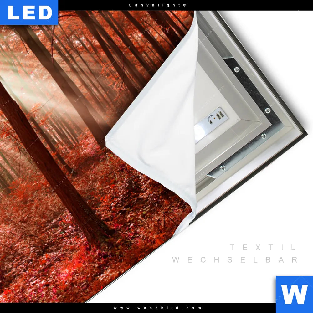 Canvalight® TEX Leuchtbild | Roter Herbstwald | Querformat