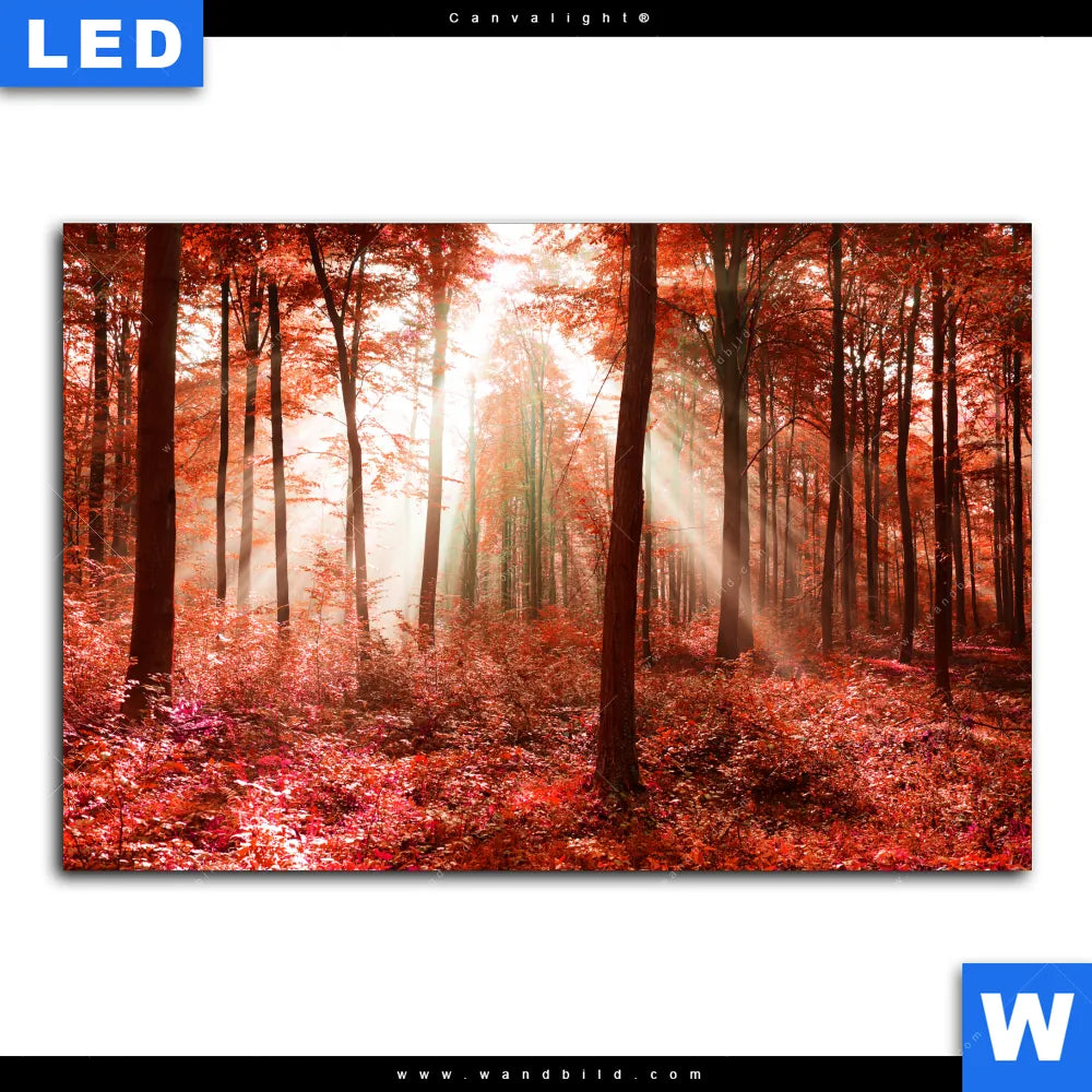 Canvalight® Leuchtbild | Roter Herbstwald | Querformat