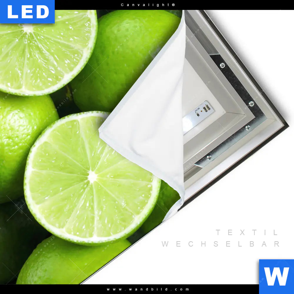 Canvalight® TEX Leuchtbild | Saftige Limetten voller Energie | Quadrat