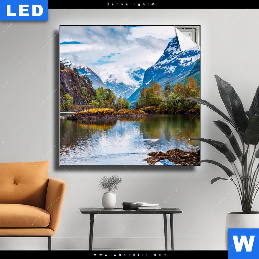 Canvalight® TEX Leuchtbild | Schöne Natur in Norwegen | Quadrat
