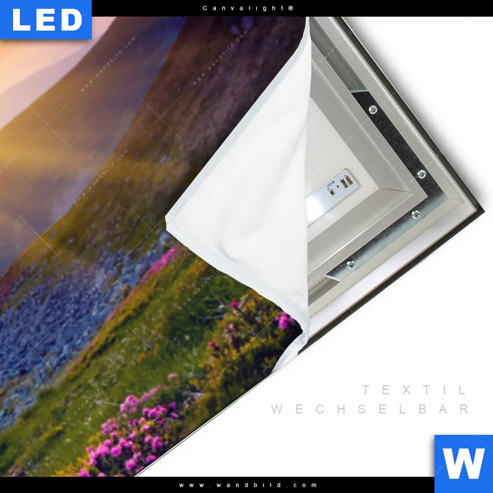 LED-Textilrahmen-Bild mit austauschbarem Landschaften Textil-Druck (Wechselbild)