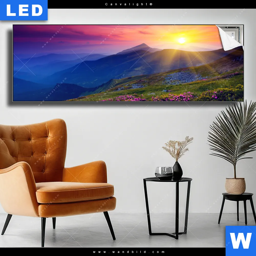 Canvalight® Leuchtbild | Sommerberg im Sonnenuntergang | Panorama