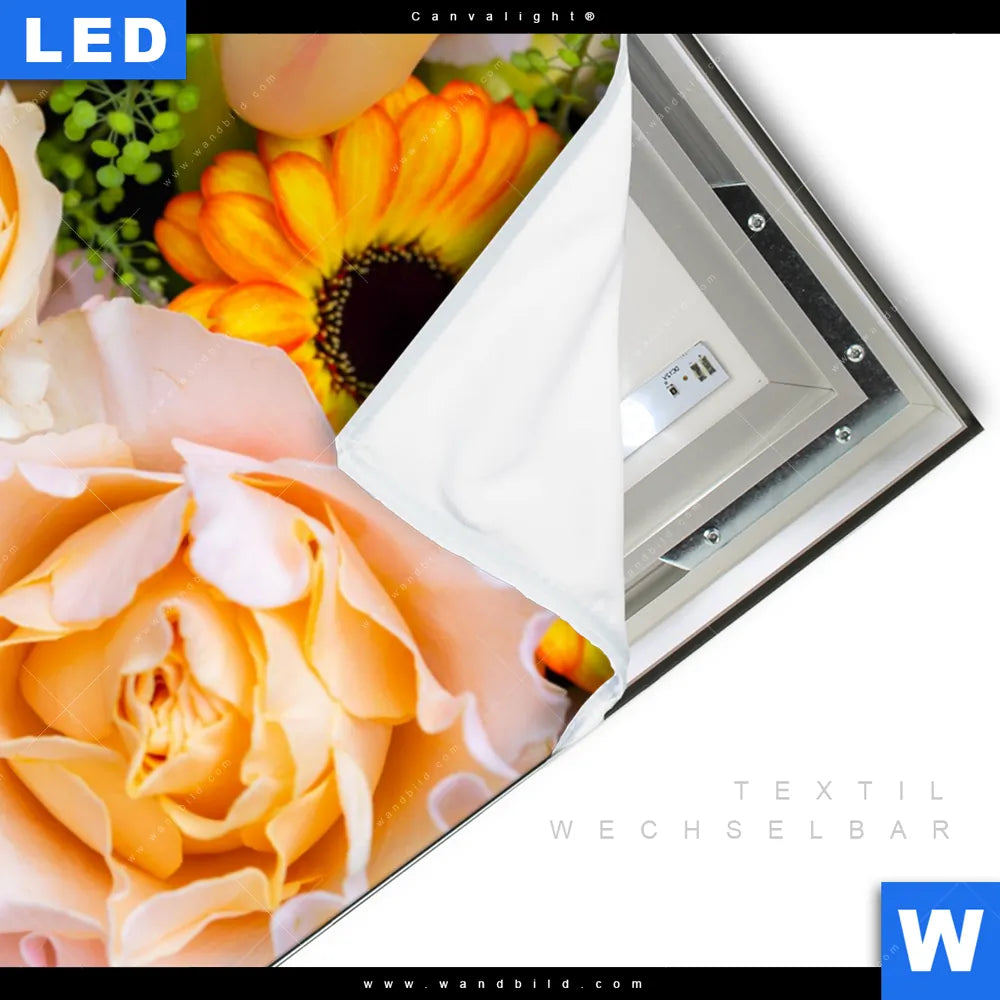 LED-Textilrahmen-Bild mit austauschbarem Blumen - Botanik Textil-Druck (Wechselbild)