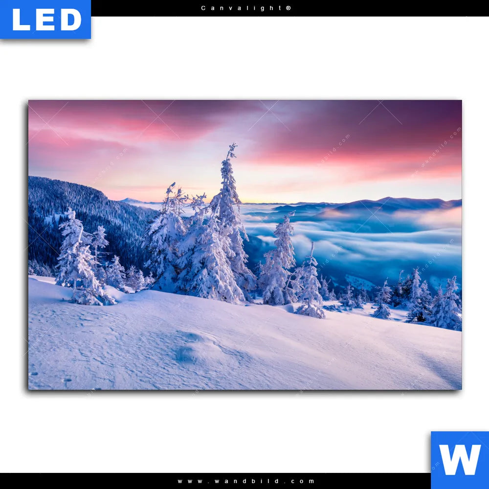 Canvalight® Leuchtbild | Sonnenaufgang im Schnee | Querformat
