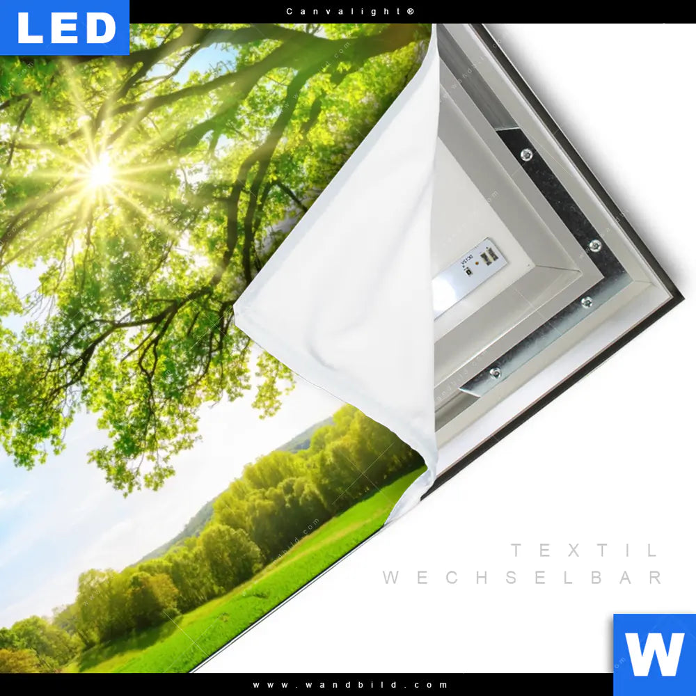 LED-Textilrahmen-Bild mit austauschbarem Landschaften, Wald - Bäume Textil-Druck (Wechselbild)