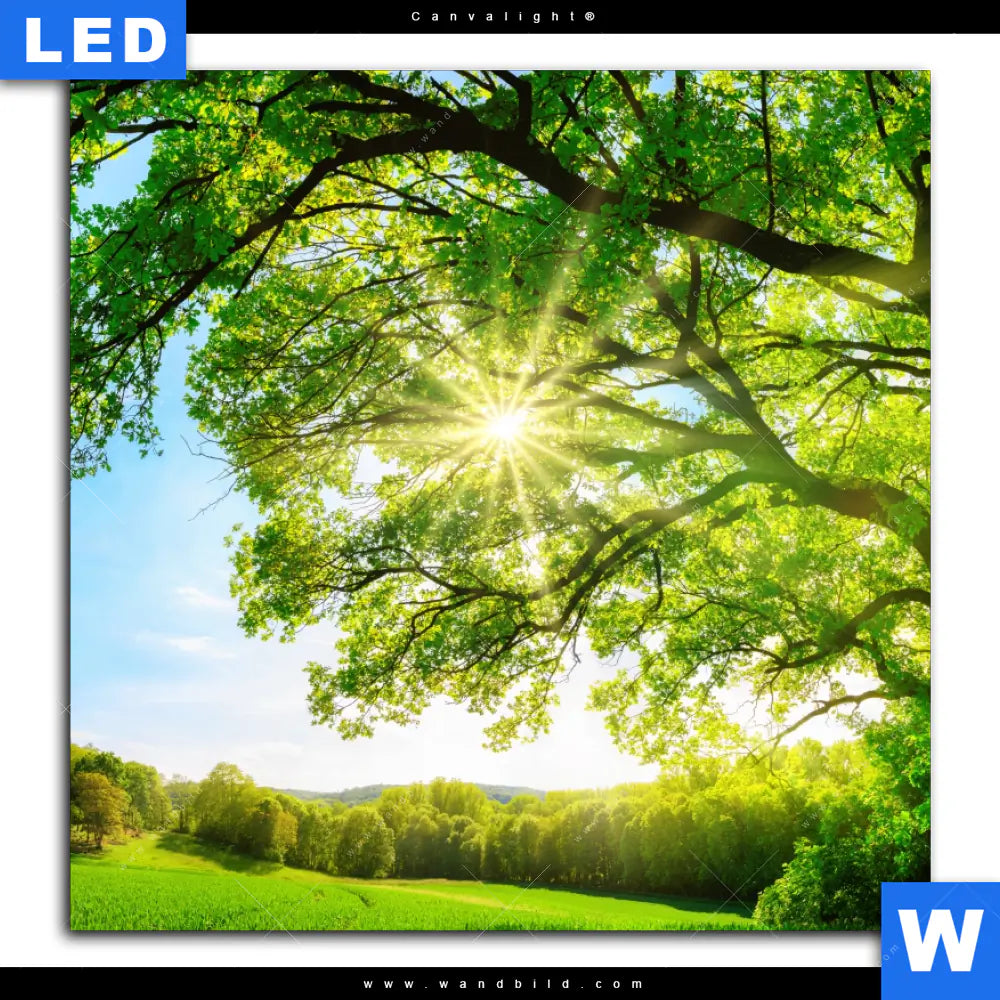 Canvalight® Leuchtbild | Sonnendurchfluteter Baum | Quadrat