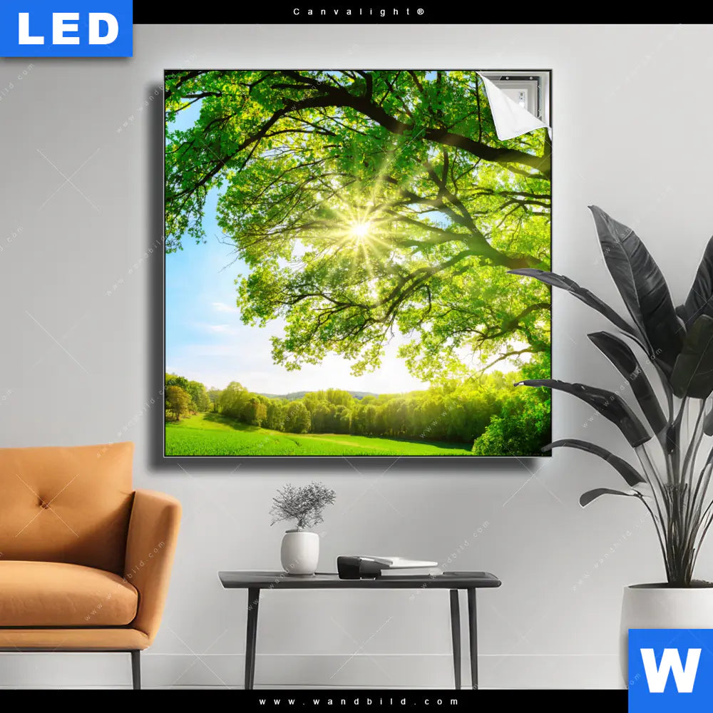 Canvalight® TEX Leuchtbild | Sonnendurchfluteter Baum | Quadrat