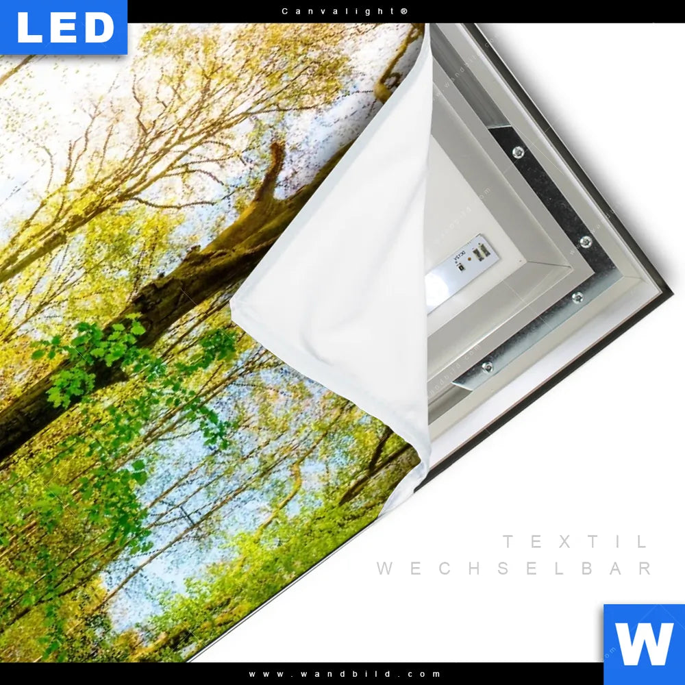 LED-Textilrahmen-Bild mit austauschbarem Landschaften, Wald - Bäume Textil-Druck (Wechselbild)