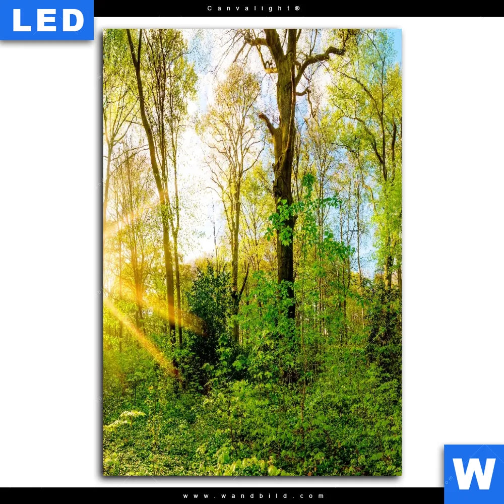 Canvalight® Leuchtbild | Sonnenlicht im Wald | Hochformat