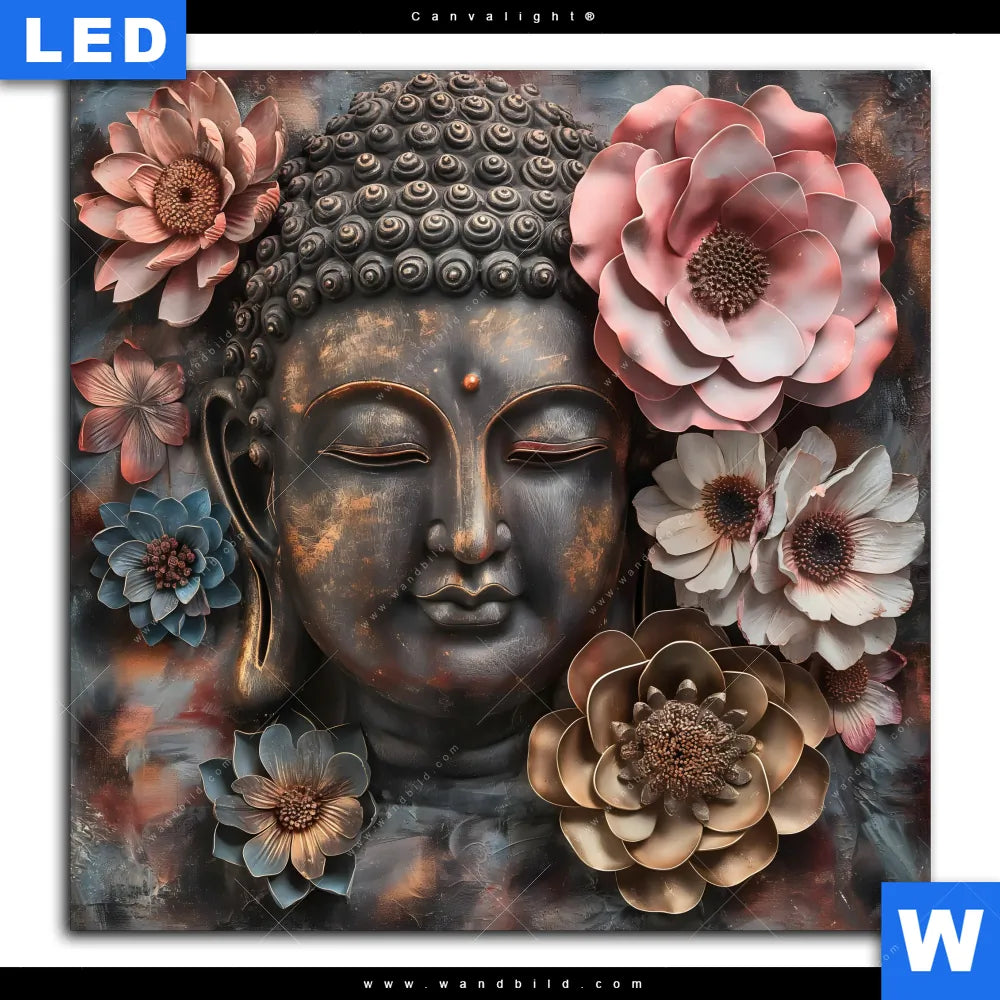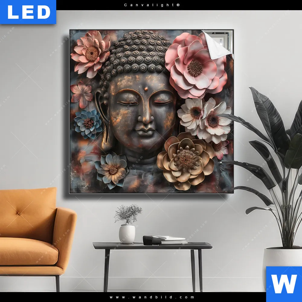 Canvalight® Leuchtbild | Spiritueller Buddha und Blumen | Quadrat