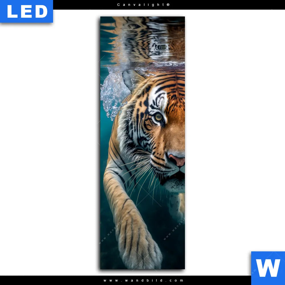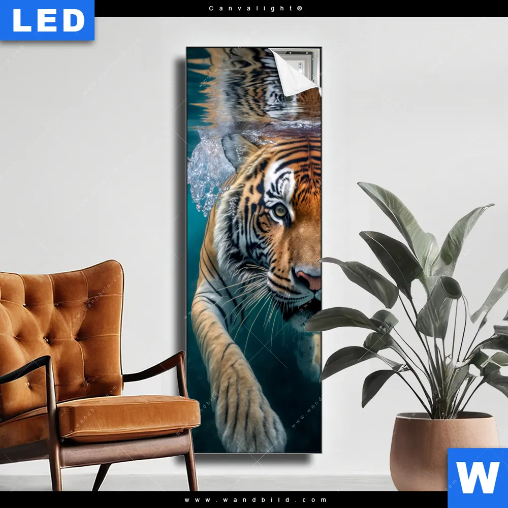 Canvalight® Leuchtbild | Tauchender Tiger | Schmal