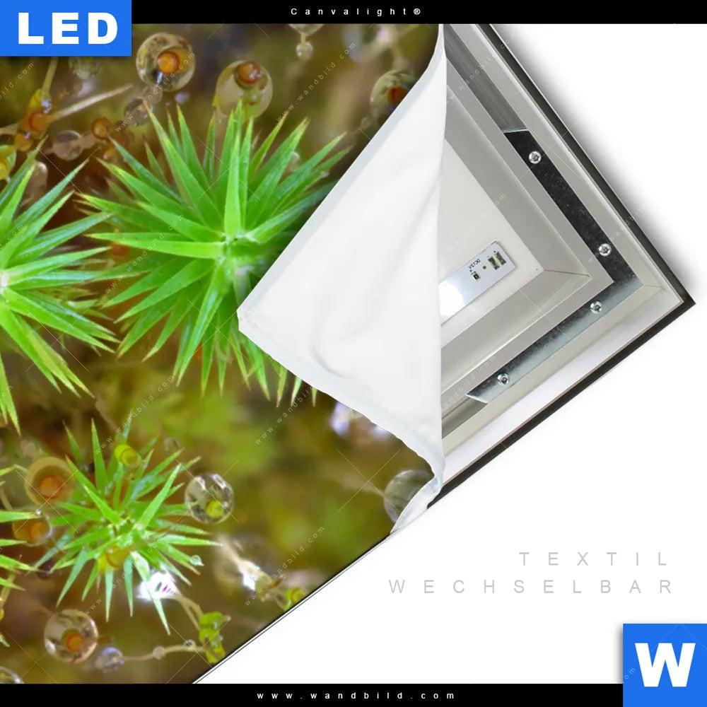 Canvalight® TEX Leuchtbild | Tautropfen auf Moos | Hochformat