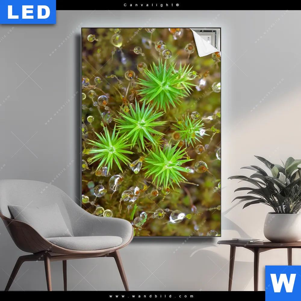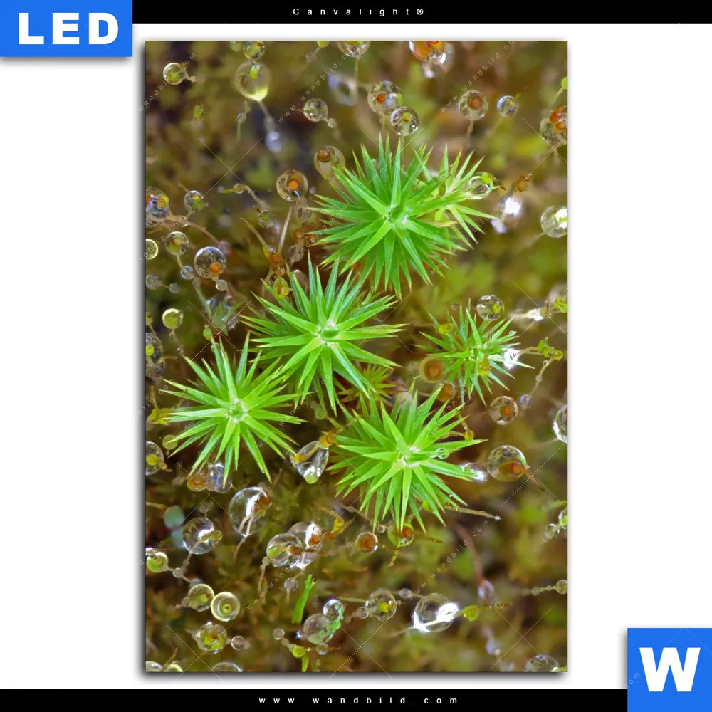Canvalight® Leuchtbild | Tautropfen auf Moos | Hochformat