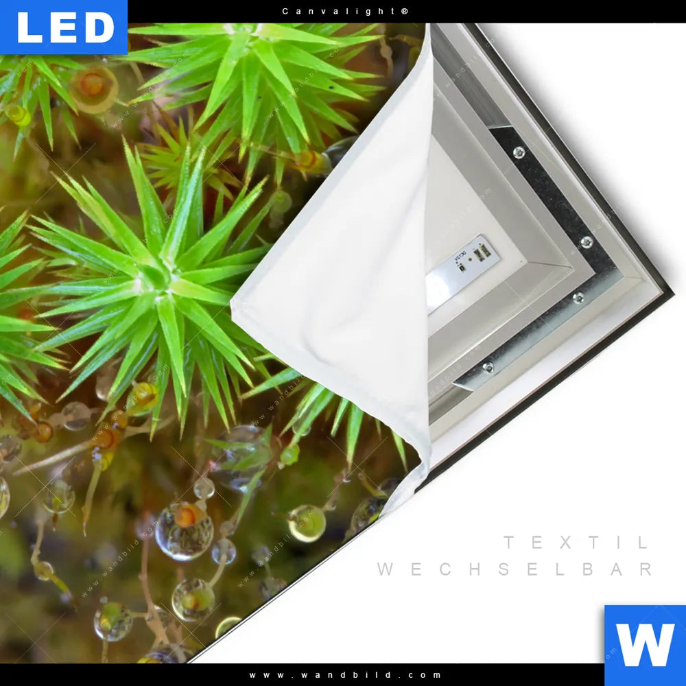 Canvalight® TEX Leuchtbild | Tautropfen auf Moos | Quadrat