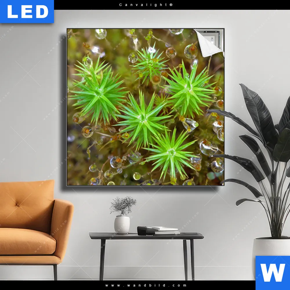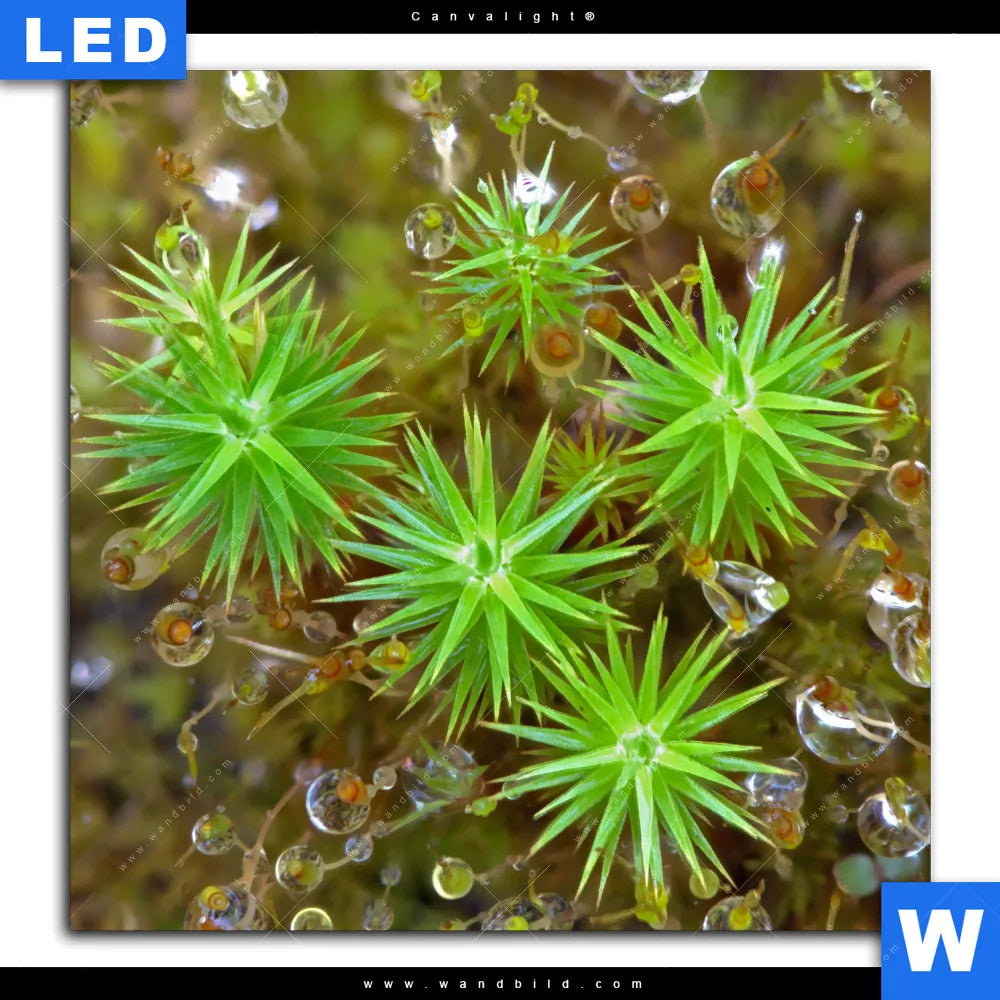 Canvalight® Leuchtbild | Tautropfen auf Moos | Quadrat