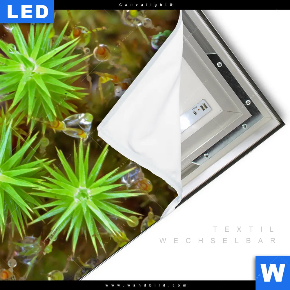 Canvalight® TEX Leuchtbild | Tautropfen auf Moos | Querformat