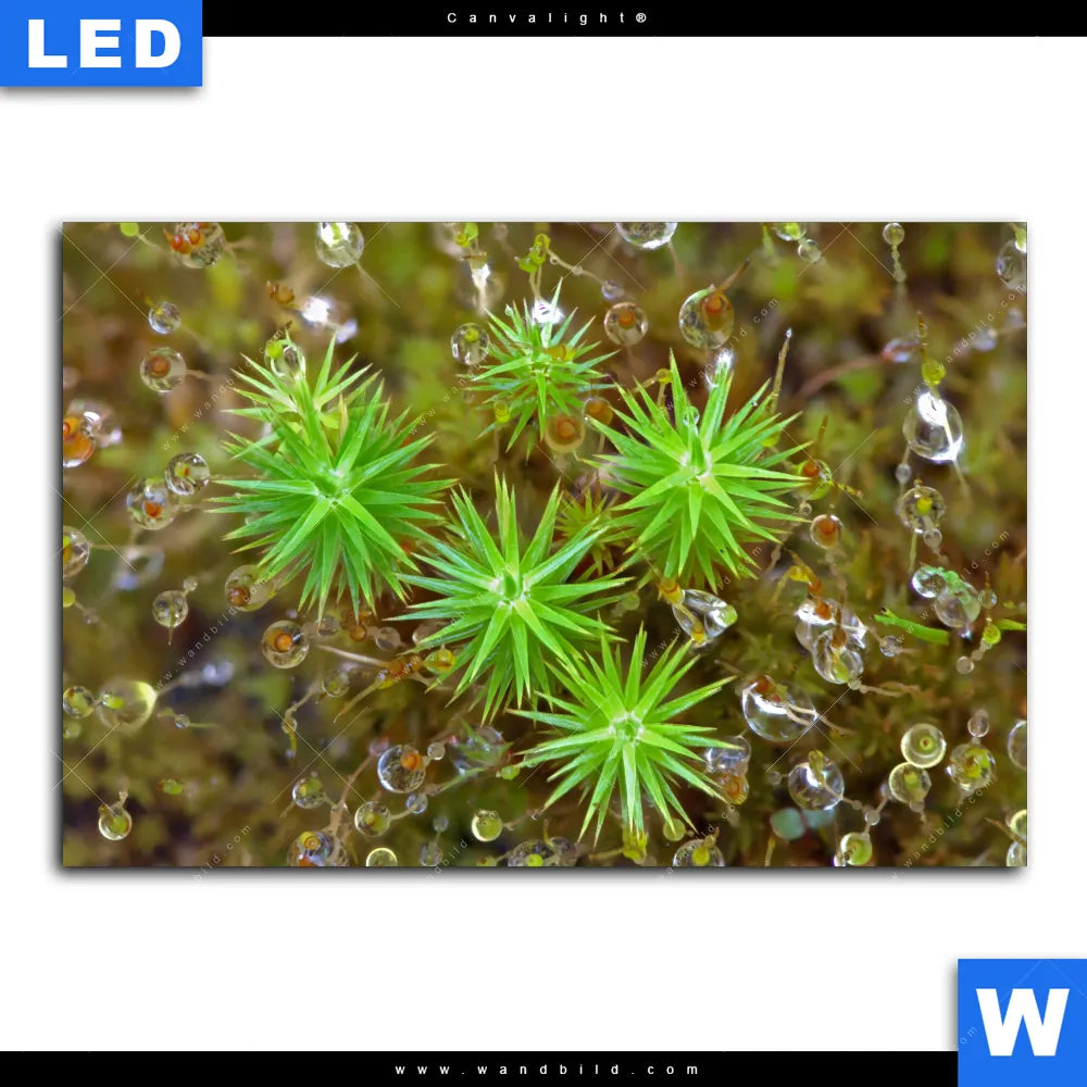 Canvalight® Leuchtbild | Tautropfen auf Moos | Querformat
