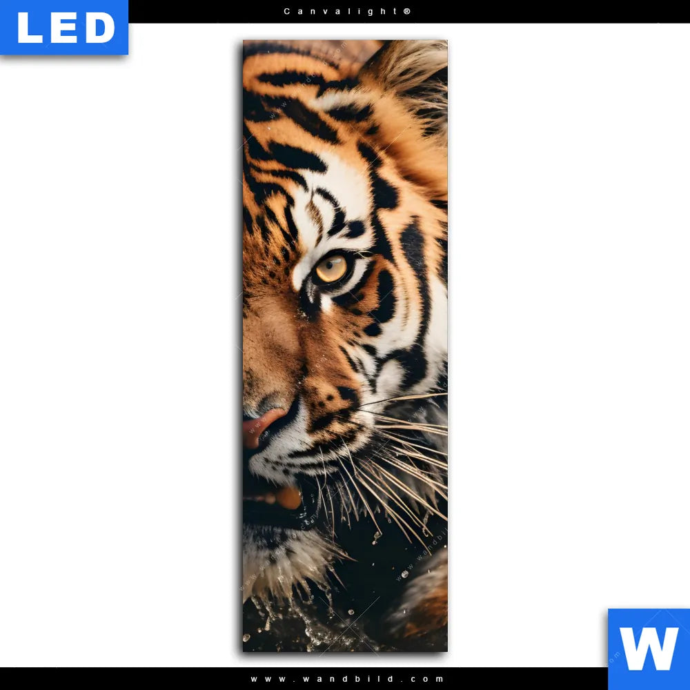 Canvalight® Leuchtbild | Tiger im Wasser | Schmal