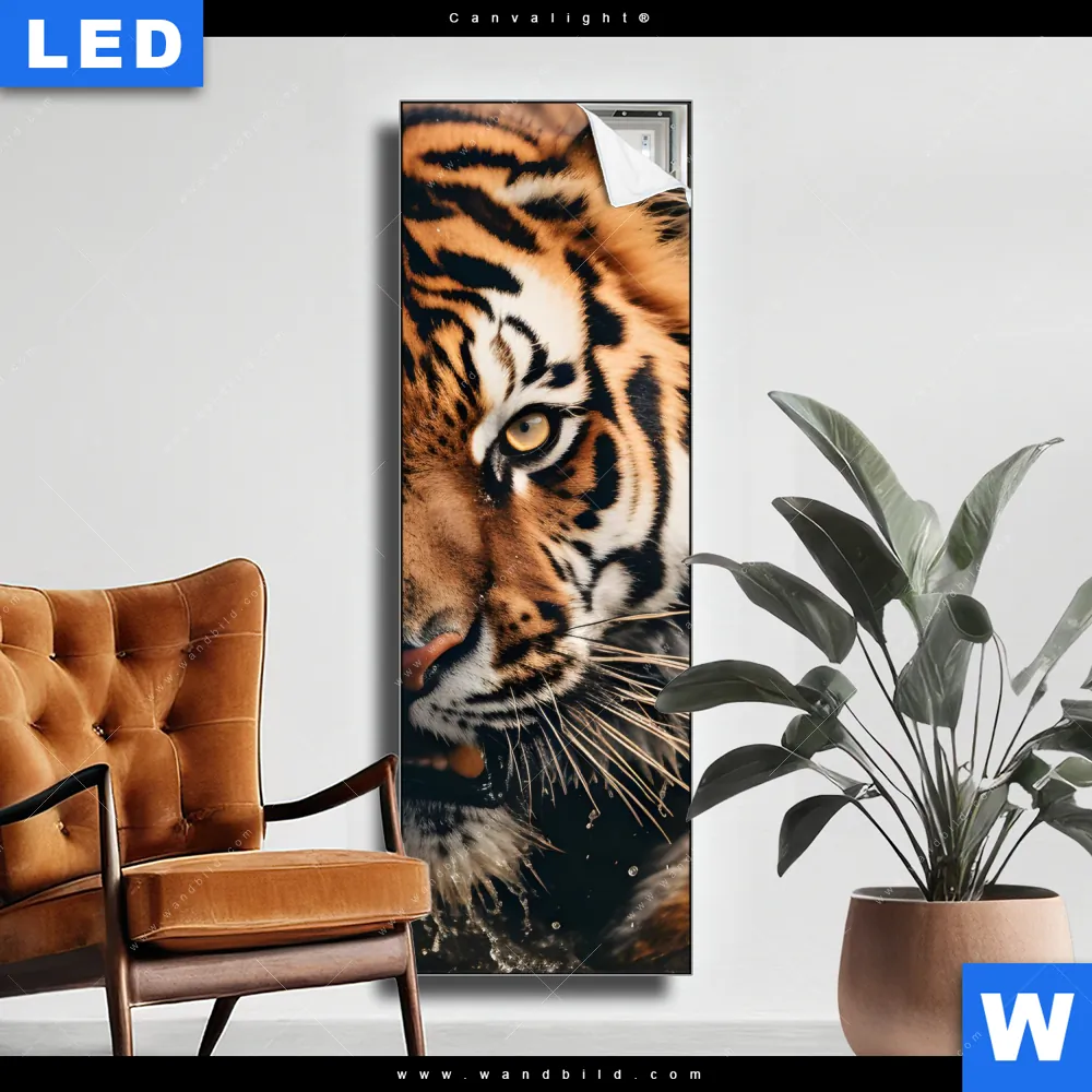 Canvalight® TEX Leuchtbild | Tiger im Wasser | Schmal