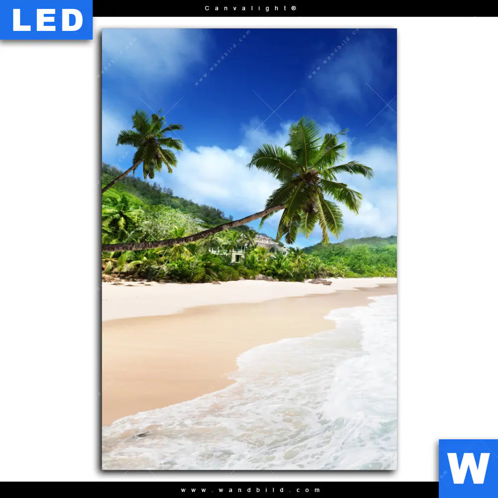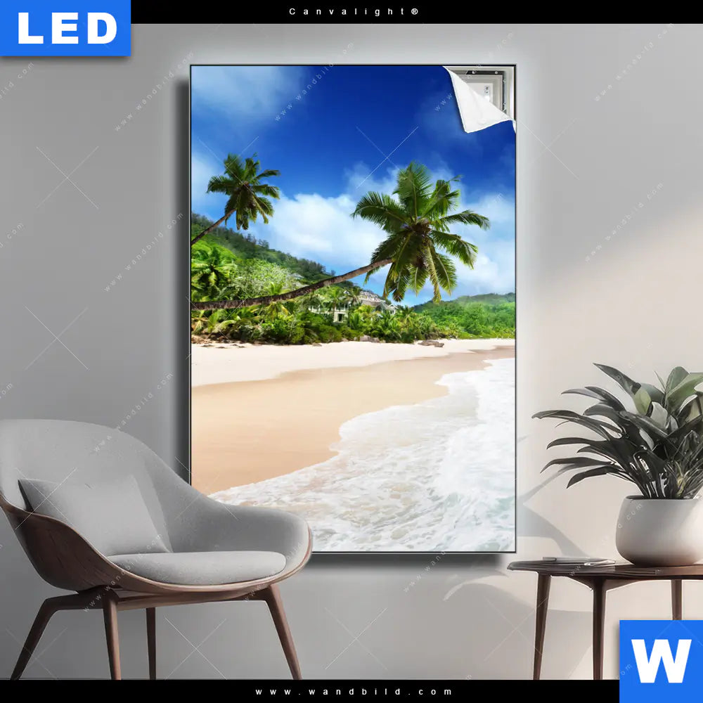 Canvalight® Leuchtbild | Traumstrand unter Palmen | Hochformat