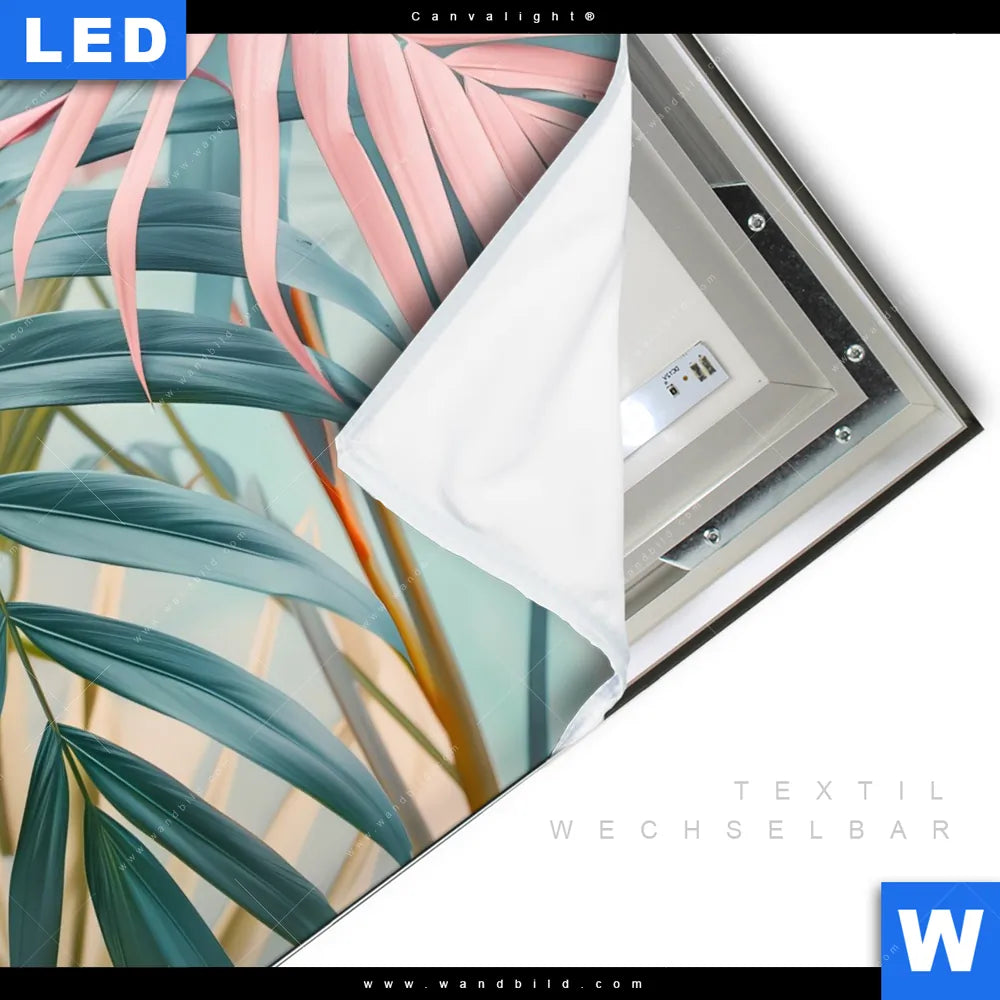 Canvalight® TEX Leuchtbild | Tropische Blätter in Pastellfarben | Quadrat