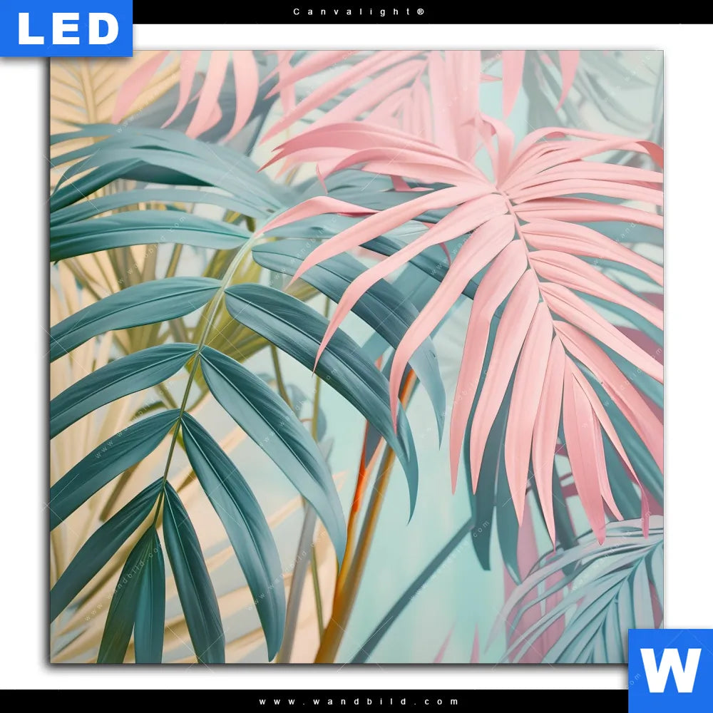 Canvalight® Leuchtbild | Tropische Blätter in Pastellfarben | Quadrat
