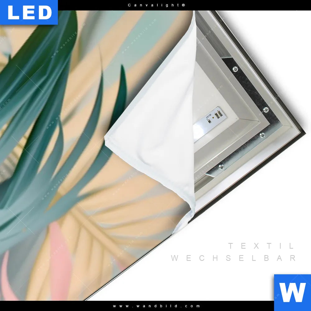 Canvalight® TEX Leuchtbild | Tropische Blätter in Pastellfarben | Schmal