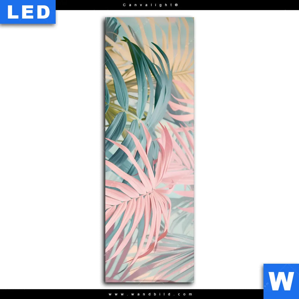 Canvalight® Leuchtbild | Tropische Blätter in Pastellfarben | Schmal