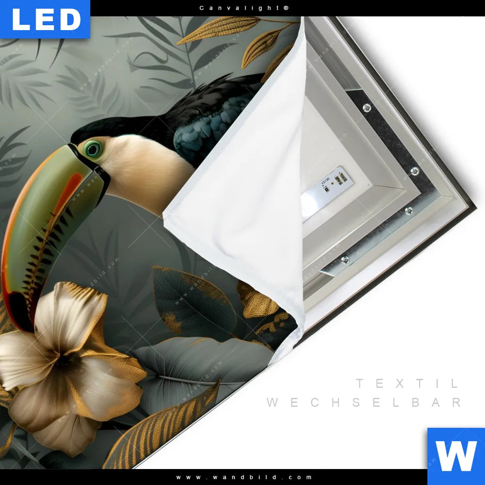 Canvalight® TEX Leuchtbild | Tukan im goldenen Regenwald | Quadrat