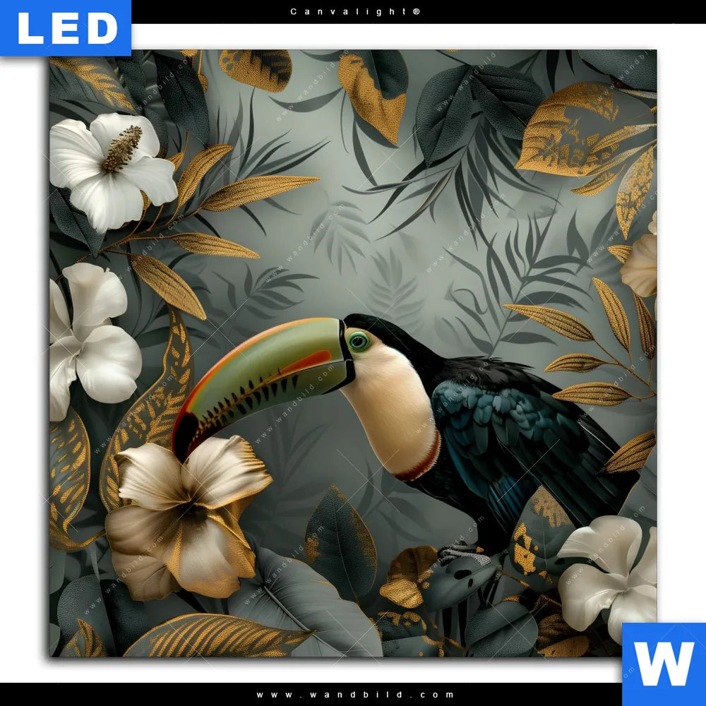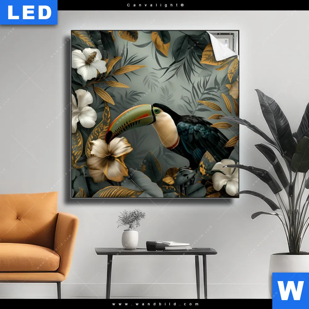 Canvalight® Leuchtbild | Tukan im goldenen Regenwald | Quadrat