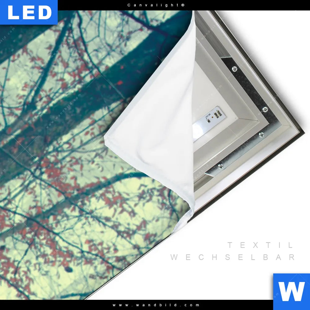 LED-Textilrahmen-Bild mit austauschbarem Landschaften, Wald - Bäume Textil-Druck (Wechselbild)