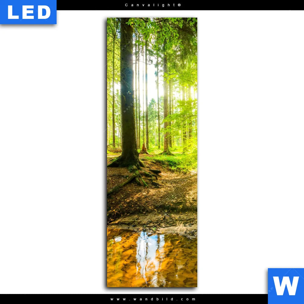 Canvalight® Leuchtbild | Wald mit Sonnenstrahlen | Schmal