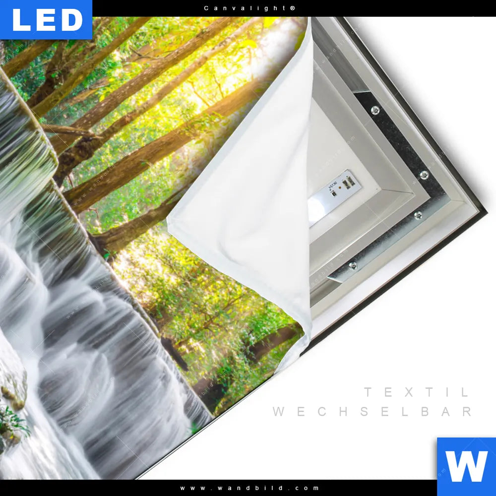 Canvalight® TEX Leuchtbild | Wald & Wasserfall No. 1 | Hochformat