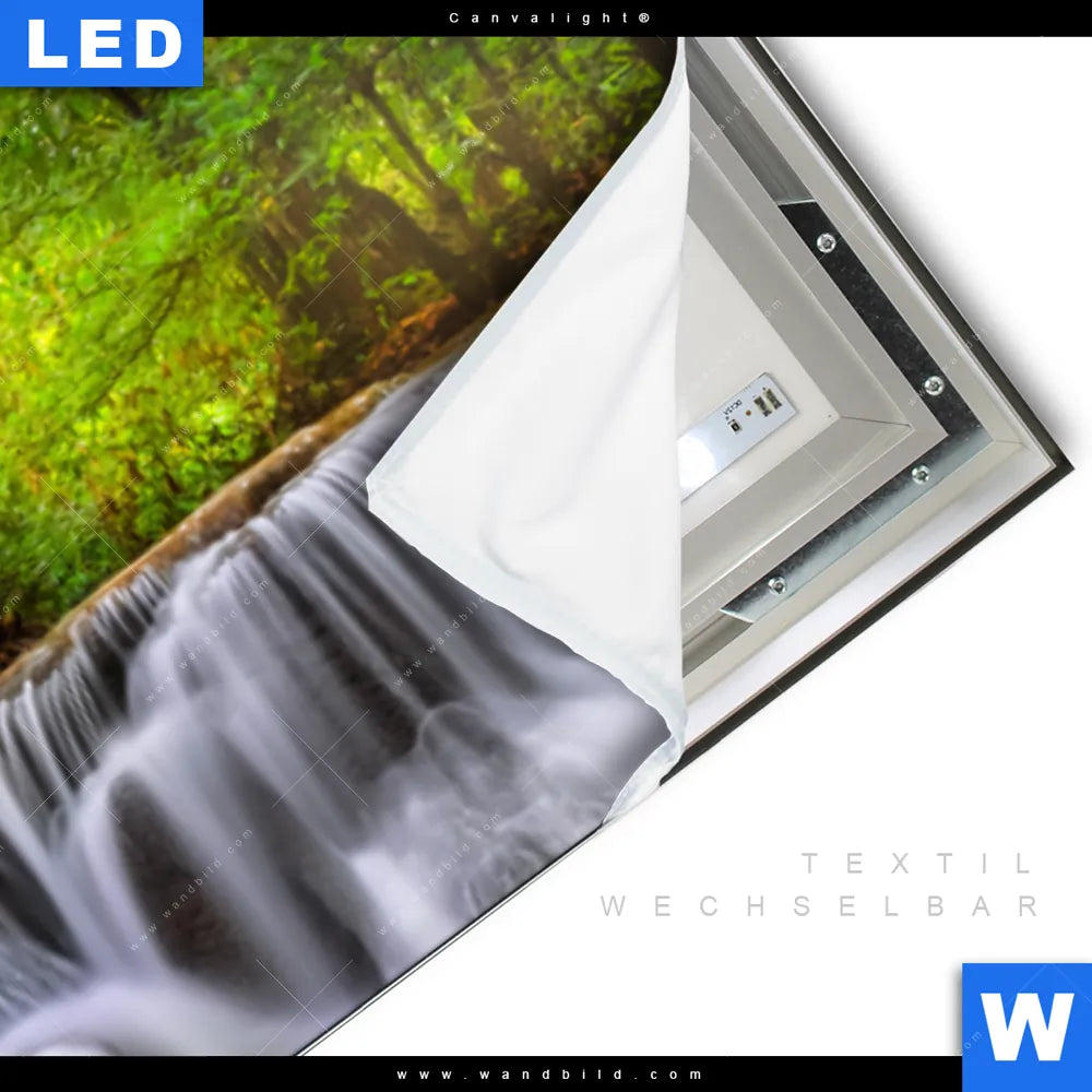 Canvalight® TEX Leuchtbild | Wald & Wasserfall No. 2 | Panorama