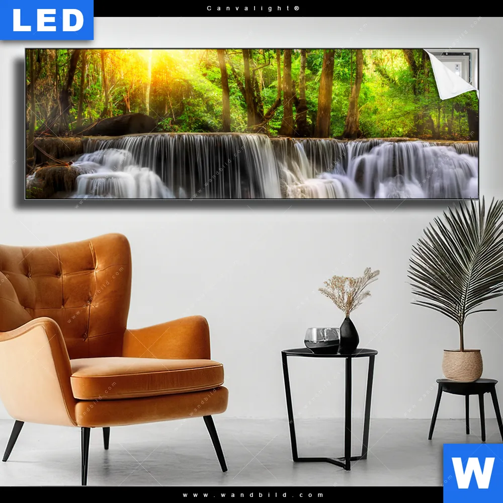 Canvalight® Leuchtbild | Wald & Wasserfall No. 2 | Panorama