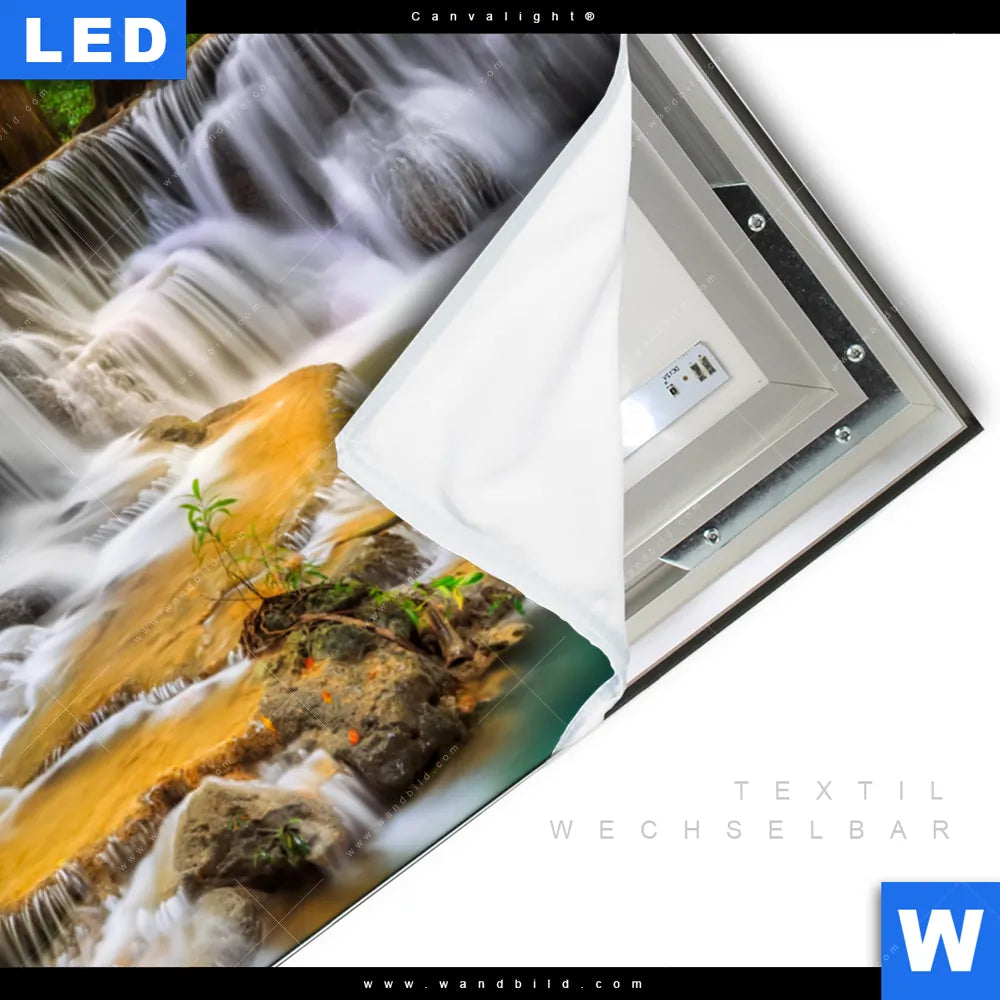 Canvalight® TEX Leuchtbild | Wald & Wasserfall No. 2 | Querformat