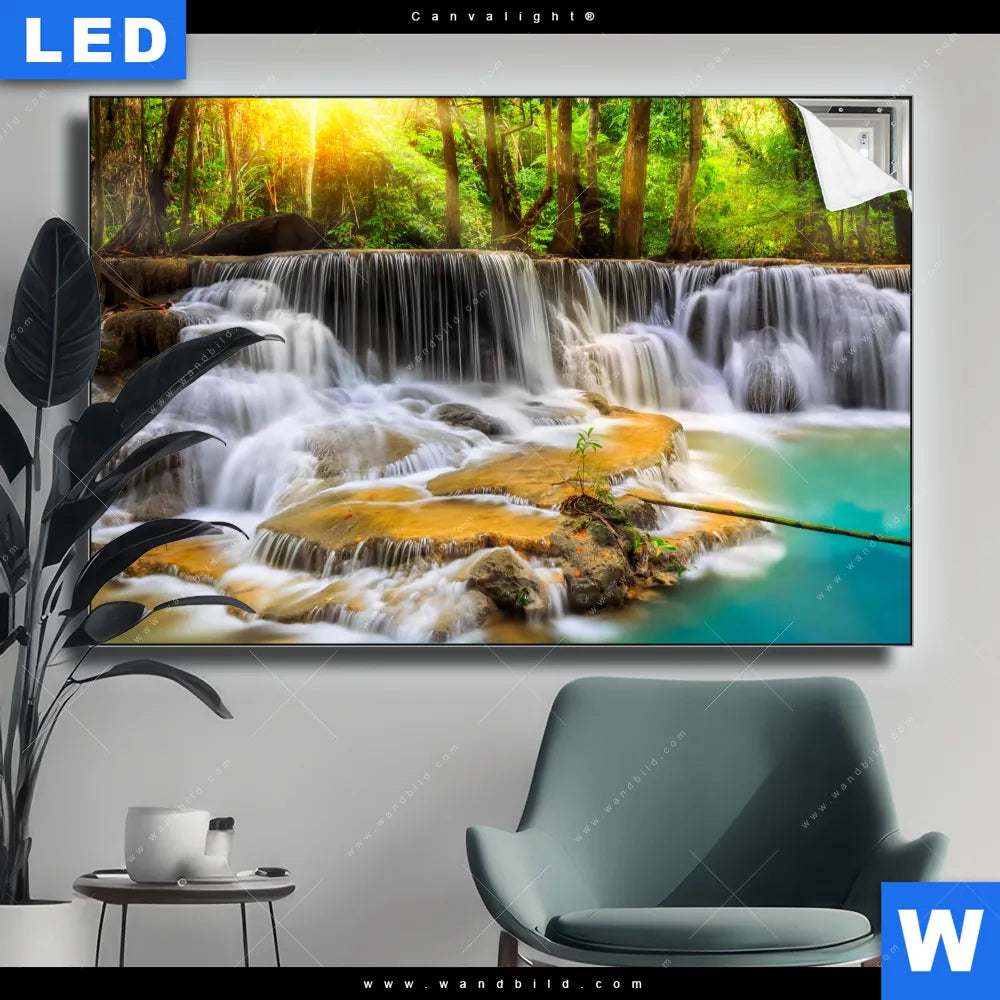 Canvalight® Leuchtbild | Wald & Wasserfall No. 2 | Querformat