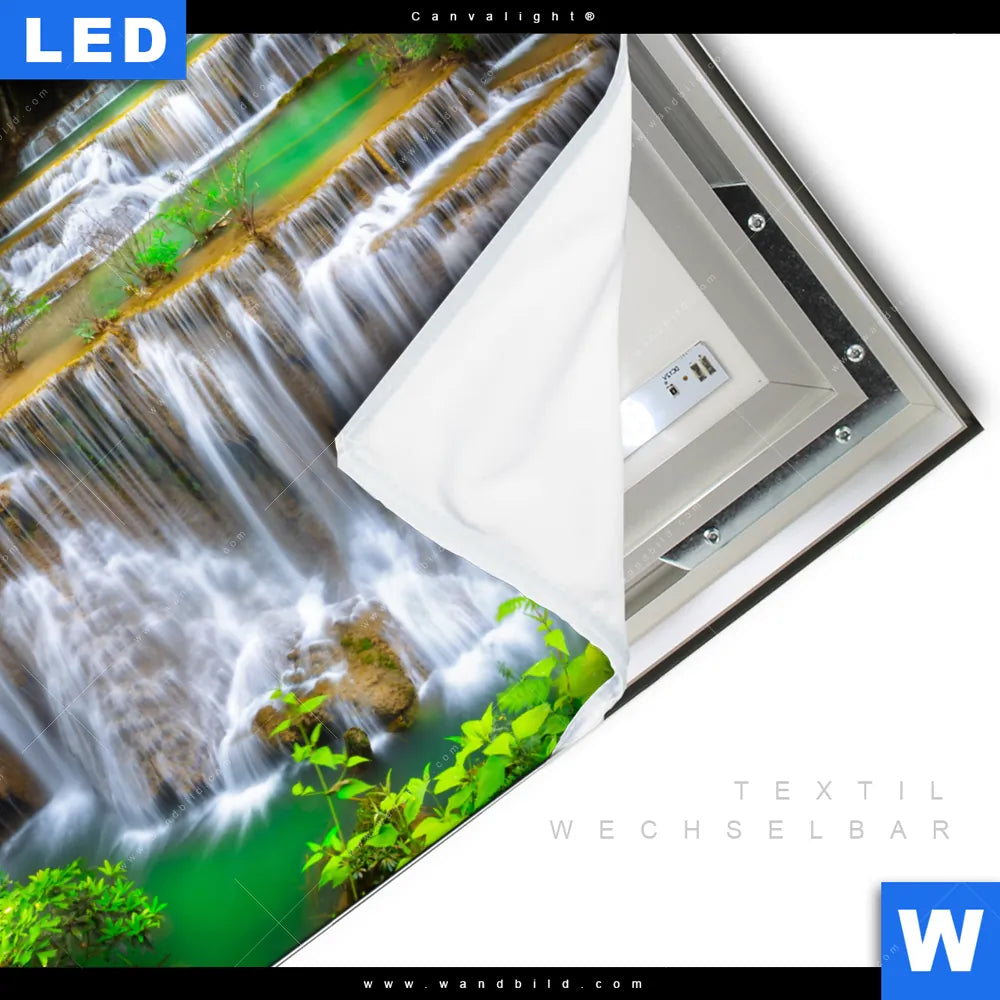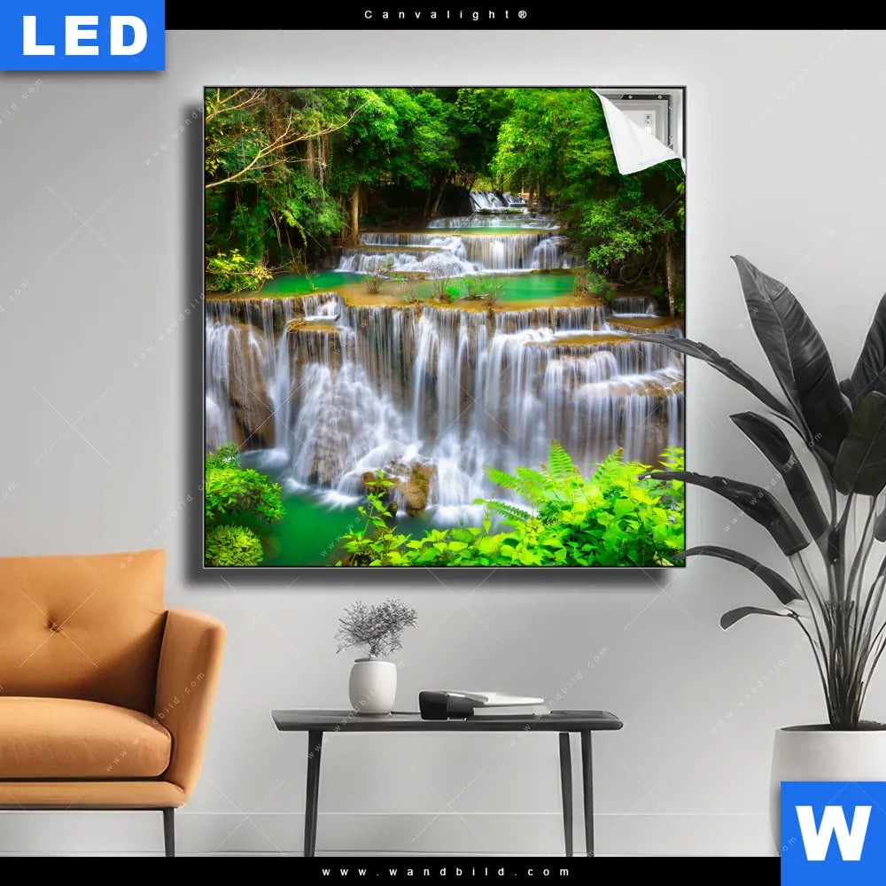 Canvalight® TEX Leuchtbild | Wald & Wasserfall No. 6 | Quadrat