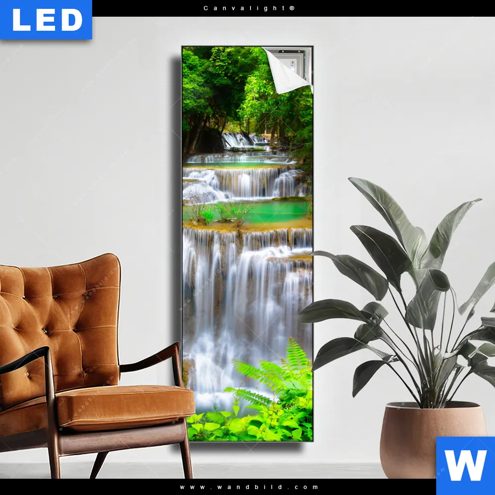 Canvalight® TEX Leuchtbild | Wald & Wasserfall No. 6 | Schmal
