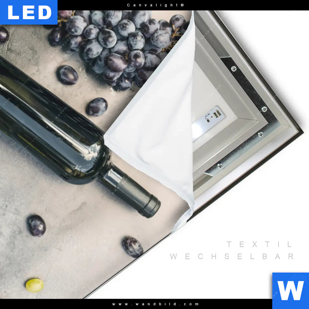 LED-Textilrahmen-Bild mit austauschbarem Essen - Trinken Textil-Druck (Wechselbild)