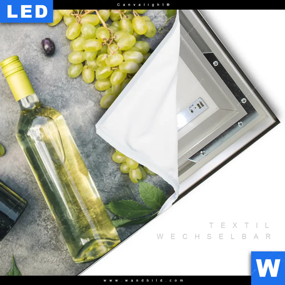 LED-Textilrahmen-Bild mit austauschbarem Essen - Trinken Textil-Druck (Wechselbild)
