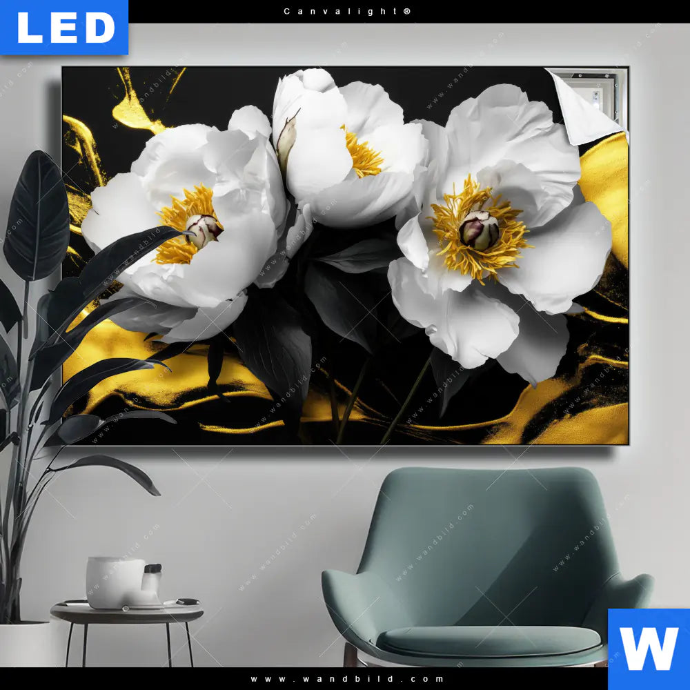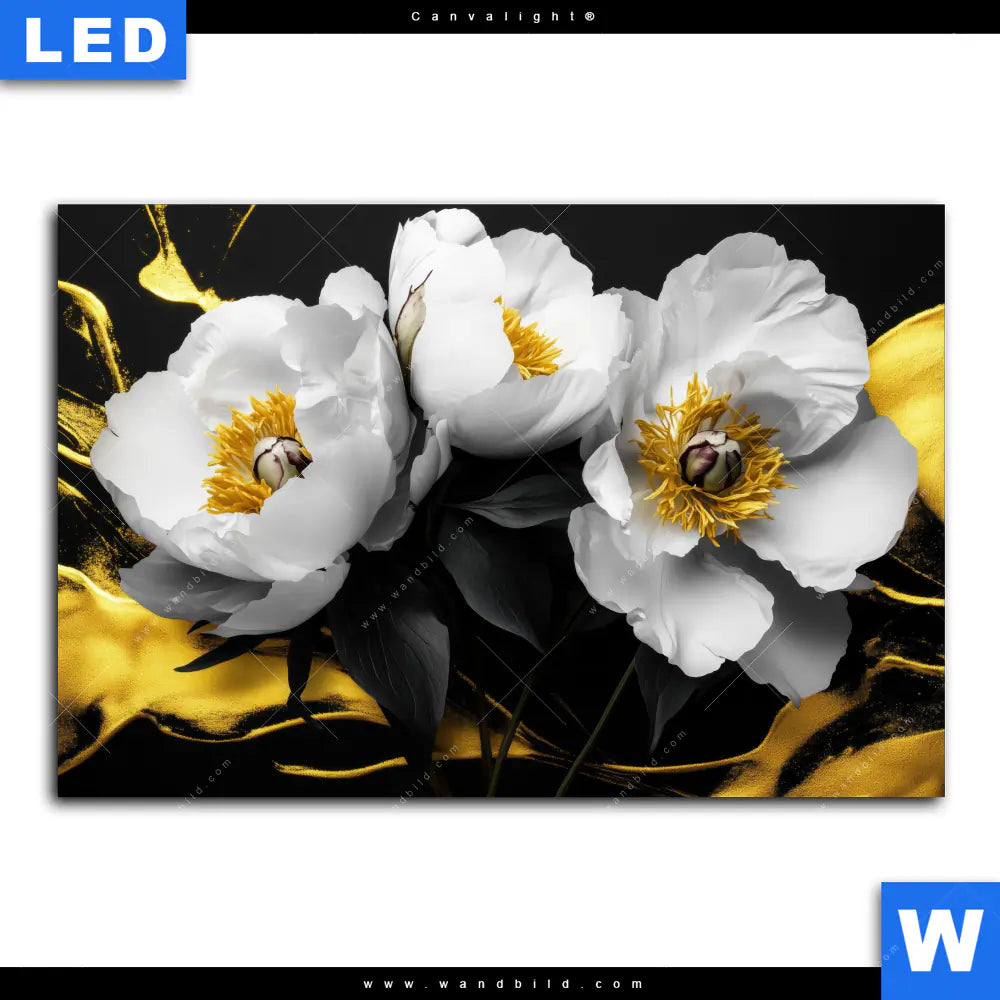 Canvalight® Leuchtbild | Weiße Blumen mit Gold | Querformat
