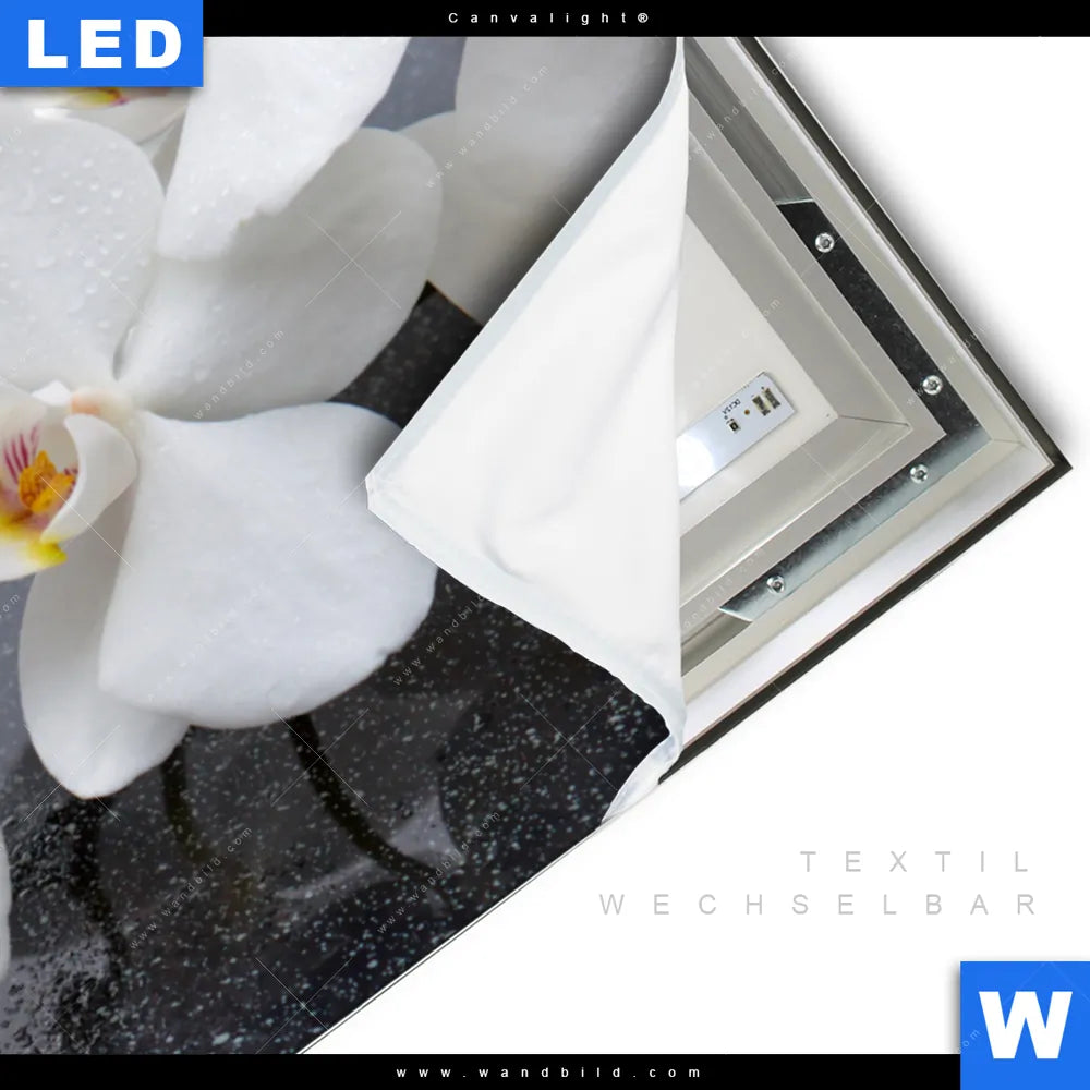 Canvalight® TEX Leuchtbild | Weiße Orchideen | Querformat