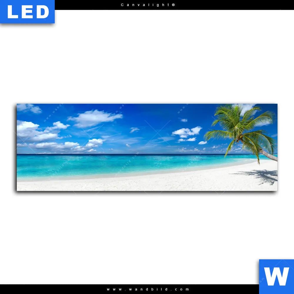 Canvalight® Leuchtbild | Weißer Strand & Kokospalme | Panorama