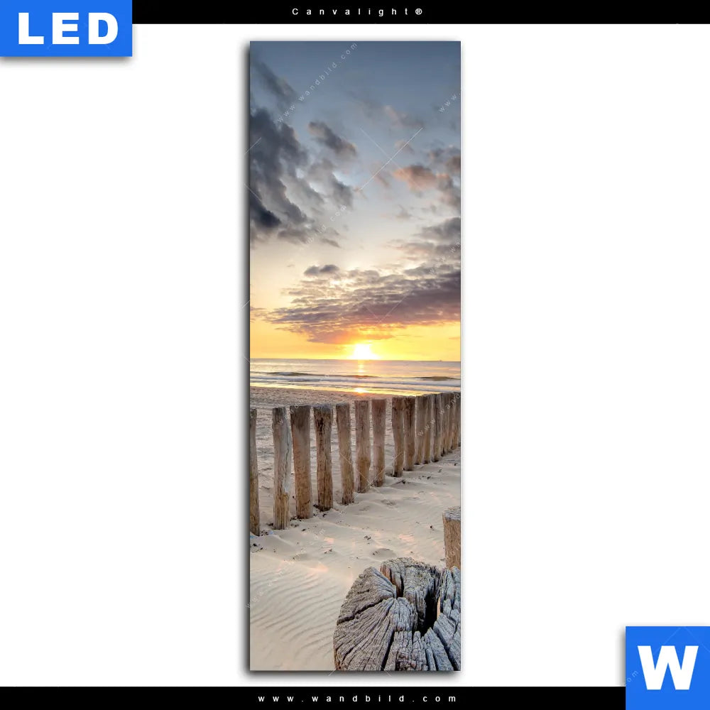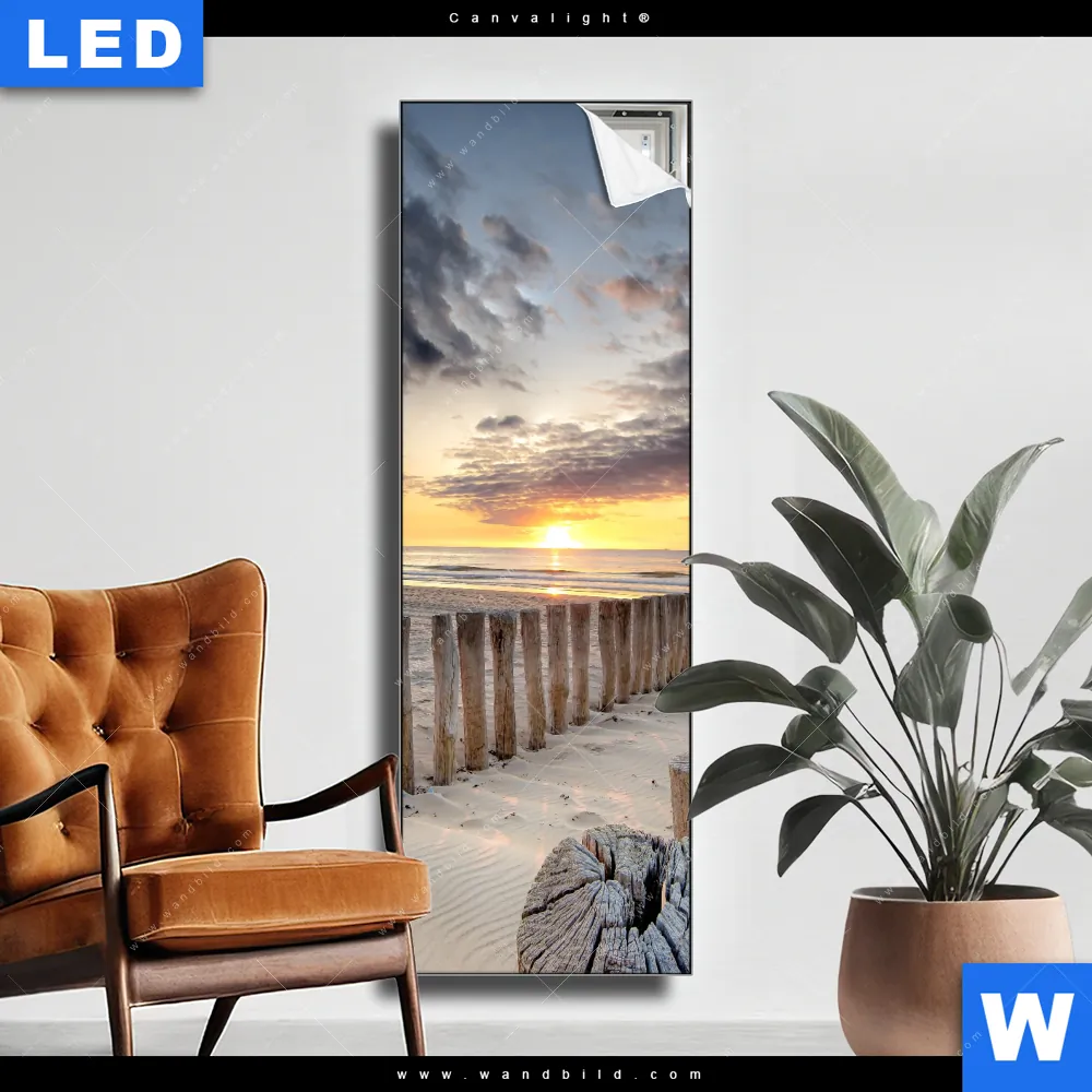 Canvalight® Leuchtbild | Wellenbrecher am Nordseestrand | Schmal